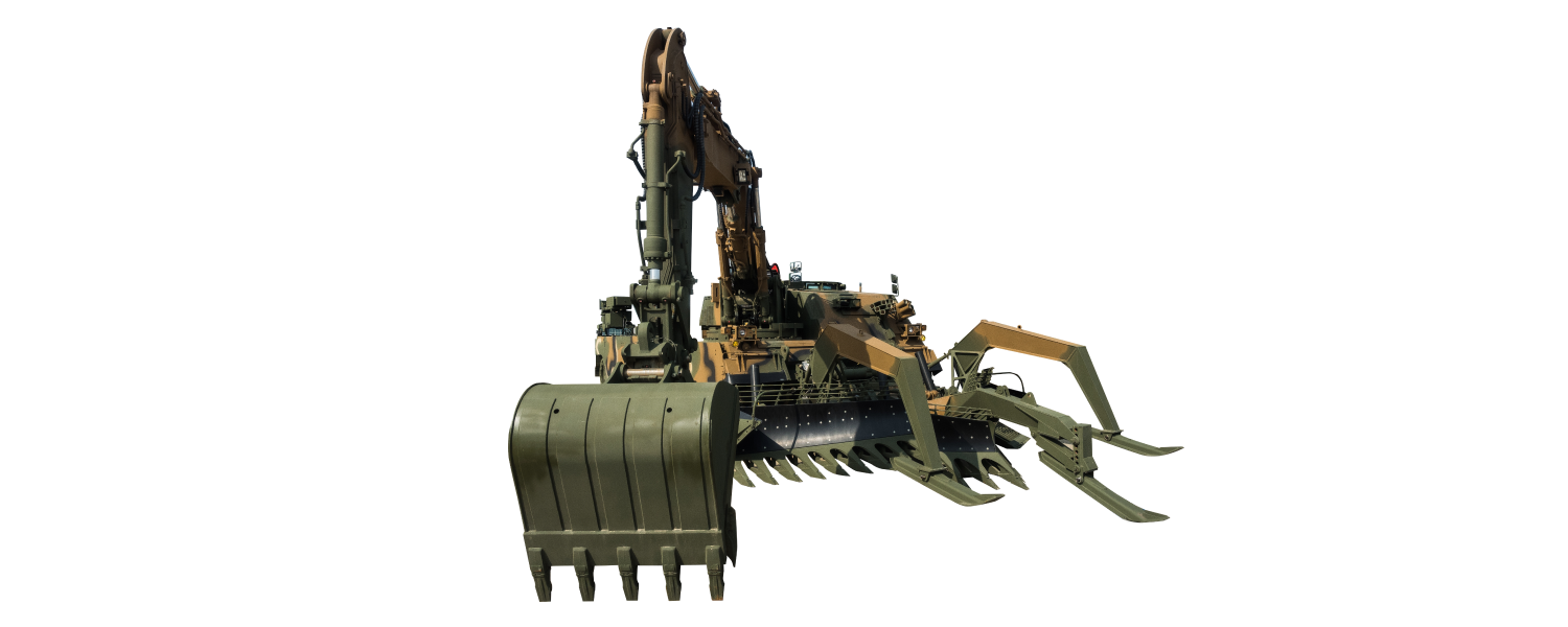 - Capable of removing complex battlefield obstacles using interchangeable attachments